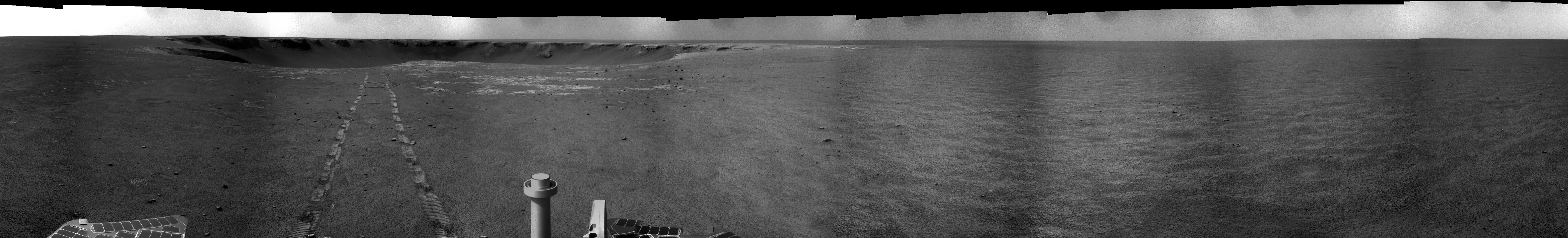 Opportunity's drivers are not messing around! Victoria crater, the site of a Mars year's worth of study, is now far over the horizon, as Opportunity has lately completed a series of very long drives. Opportunity is once again sailing the sand seas of Meridiani Planum. Here's the view as of sol 1,691.