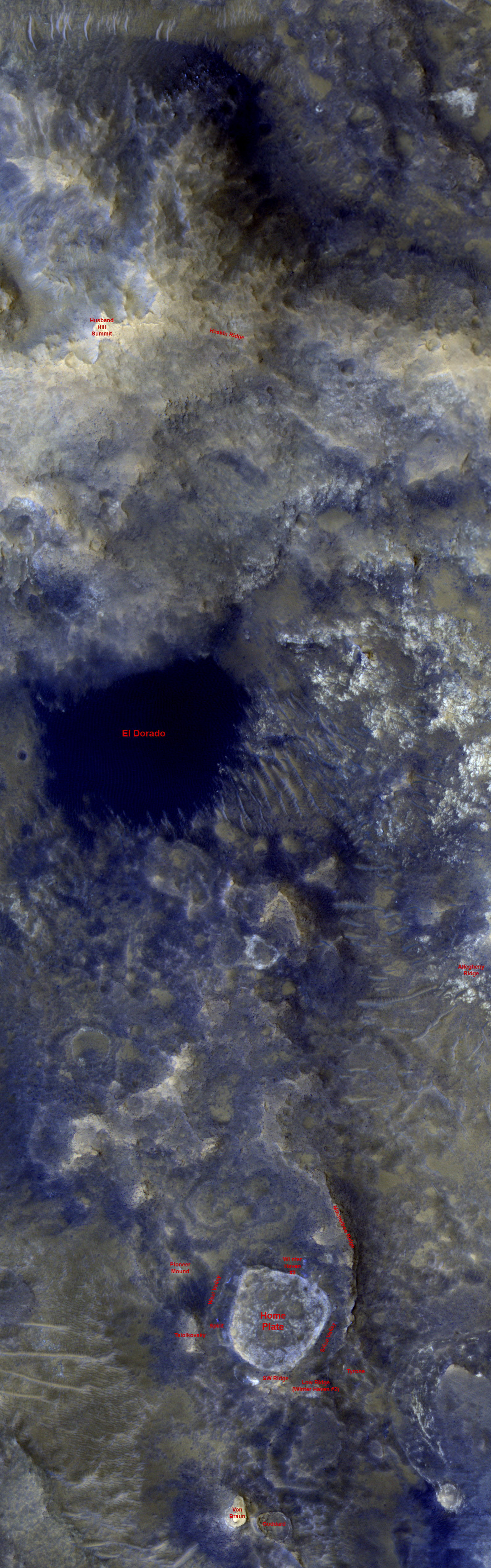 The Inner Basin and Home Plate from HiRISE, July 16, 2009 (labeled)