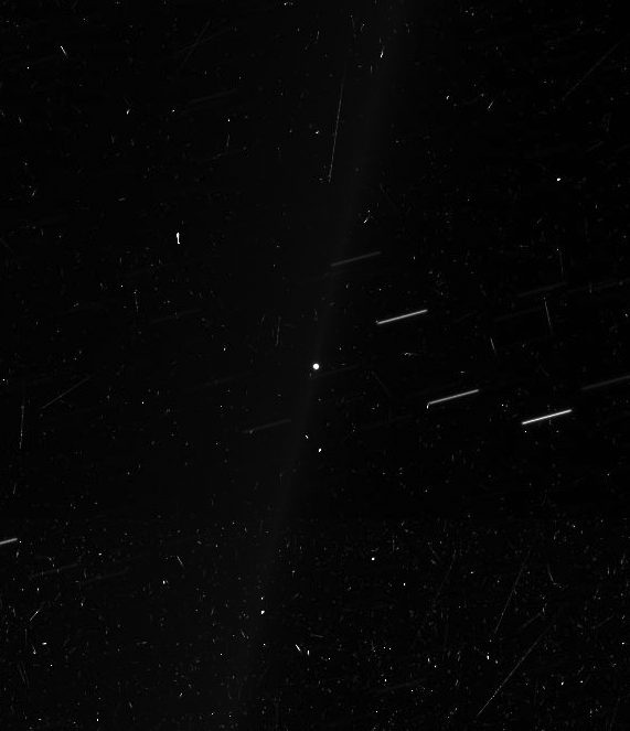 Here's a wide-angle shot showing Aegaeon in context with the G ring (and lots of stars and cosmic ray hits. I've sent a query into someone on the team about why there are more cosmic ray hits in the bottom part of the image than the rest of it.)