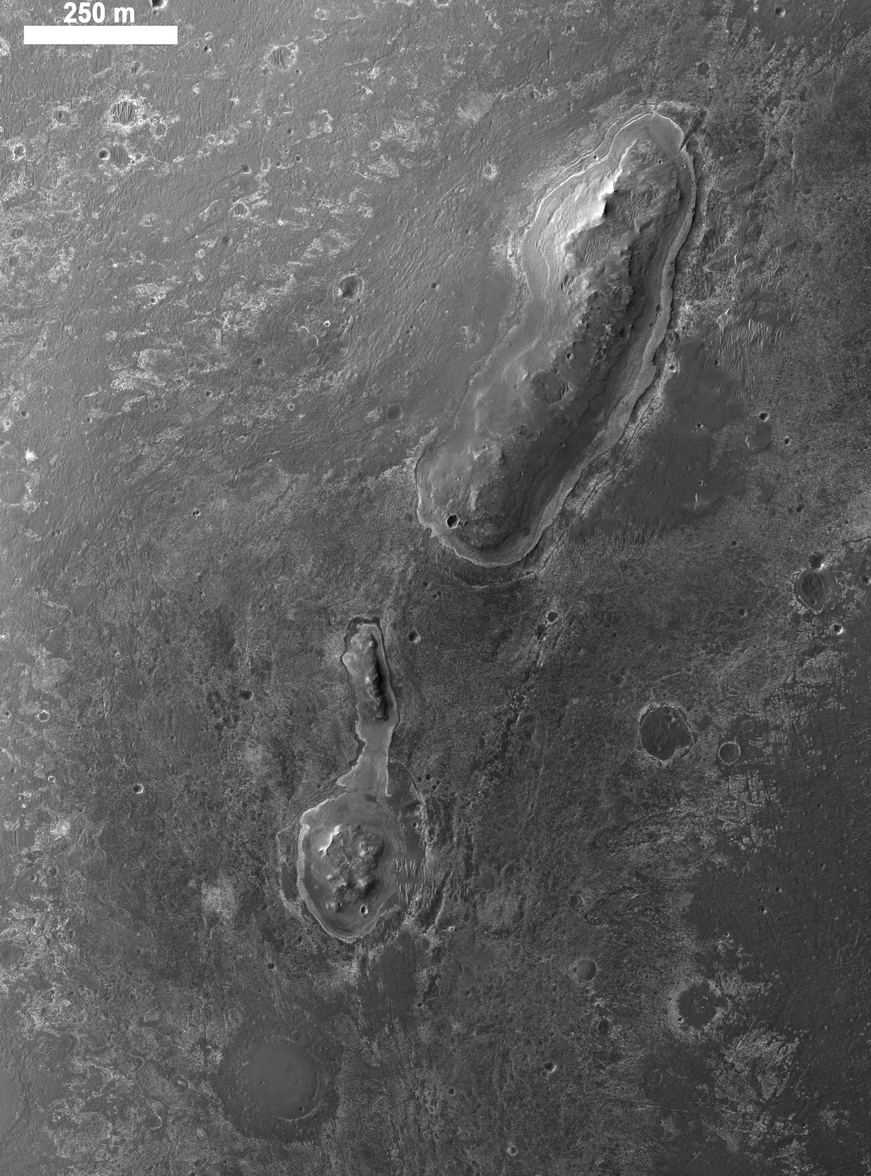 This is a small segment of HiRISE image PSP_010486_1775, which covers the western rim of Endeavour crater, the destination for Opportunity's long trek. The small piece of the image shown here is the segment of Endeavour's rim that is closest to Opportunity.References: