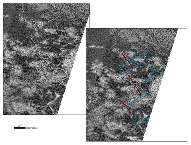 There's a new "planetary gromorphology image of the month" posted at the International Association of Geomorphologists' Planetary Geomorphology Working Group page, and it's a cool post about the shapes of the river networks on Titan. As I did for their previous image of the month feature, I'm going to shamelessly copy its content, translating it from academese. The original was written by Devon Burr and her student Sarah Drummond, of the University of Tennessee, Knoxville, and Robert Jacobsen, a senior undergrad at Colorado College (cool!)Rectilinear Fluvial Networks on Titan