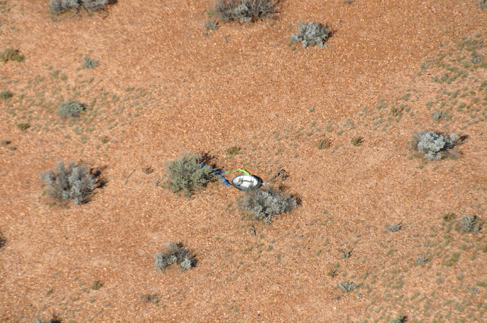 JAXA located the heat shield on June 14, 2010, the afternoon after it protected the sample capsule's entry into Earth's atmosphere.Asteroid Explorer "Hayabusa" was launched from Uchinoura Space Center, Kagoshima, Japan on May 9th, 2003, and touched down on the asteroid "Itokawa" in November 2005. After obtaining the asteroid's surface material, Hayabusa left for the Earth and finally, in early morning of June 13th, 2010, entered the Earth's atmosphere along with the re-entry capsule that the spacecraft detached beforehand. The capsule successfully landed in the Woomera Prohibited Area in South Australia, and was retrieved by JAXA at approximately 4:08 p.m. (JST) on June 14th, 2010.Also, a teaser on IKAROS: They've deployed at least one of the cameras, which has apparently taken photos of the sail! They are now processing the photos for release.It is a great pleasure to see Hayabusa successfully complete the 6 billion km journey, after meeting extreme difficulties that put the spacecraft on the verge of shut down numerous times. We, JAXA, would like to express our deepest gratitude to the Government of Australia, relevant people at the Woomera Prohibited Area, and NASA for their continued cooperation on the Hayabusa project. We would also like to thank the people of Japan and the world, Japanese government, and the media for their warm support and encouragement.