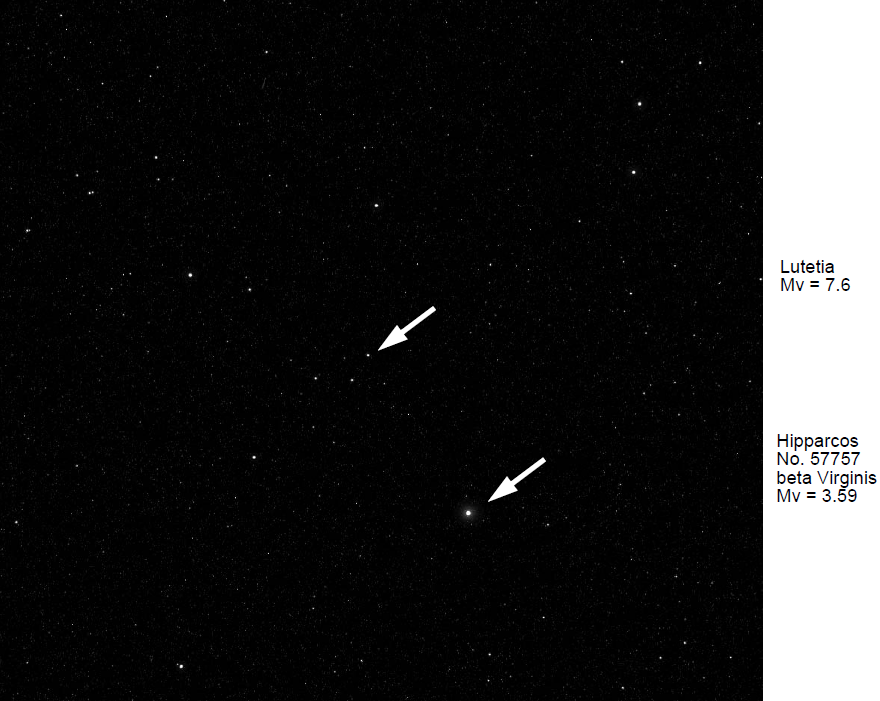 Rosetta's first sight of a pinpoint of light from its next target, asteroid Lutetia, was snapped by one of its navigational cameras on May 31, 2010, as it swooped toward a planned 3,160-kilometer flyby at 15:44:53 UTC July 10.Optical navigation images like the one above are used by the mission to fine-tune their understanding of the position of Lutetia in the sky. Analysis of the latest images has shown that, without a rocket burn, Rosetta would pass within 2639 kilometers of Lutetia, more than 500 kilometers closer than desired. So they plan to do a trajectory correction maneuver tomorrow to position Rosetta farther from the asteroid at closest approach. Why would you want to go farther? Via the Rosetta blog, Rosetta spacecraft operations manager Andrea Accomazzo explains: