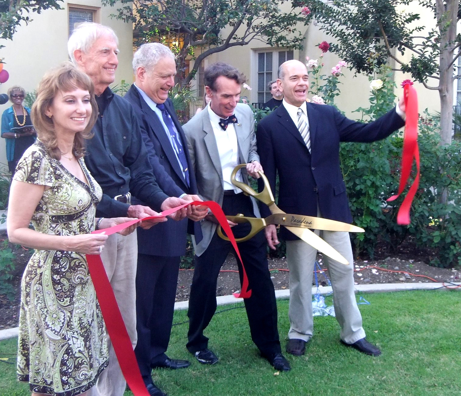 We brought in the big scissors to inaugurate our new Planetary Society headquarters. Incoming Executive Director, Bill Nye, cut the red ribbon at the Open House held August 5, 2010. Lou Friedman lent a hand with the official "snip," assisted by advisors Robert Picardo, Rosaly Lopes and Charley Kohlhase. Hundreds of visitors, including Apollo 11 astronaut Buzz Aldrin and board member Wes Huntress, toured our new offices, listened to presentations on Lightsail and Phobos LIFE, and met the Planetary Society staff. And even though our first open house for the new building has ended, we invite supporters to stop by and say hello if you ever visit Pasadena.