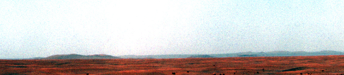 Opportunity horizon panorama, sol 2140 (contrast-enhanced horizon detail)