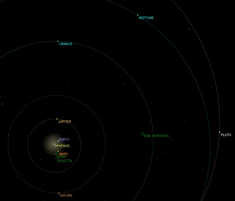 On July 30, 2010, when New Horizons imaged Neptune and Triton, Neptune was 23 astronomical units from the spacecraft. All the other planets except Uranus, as well as Pluto and every asteroid in the mail belt, were closer to New Horizons at the time!