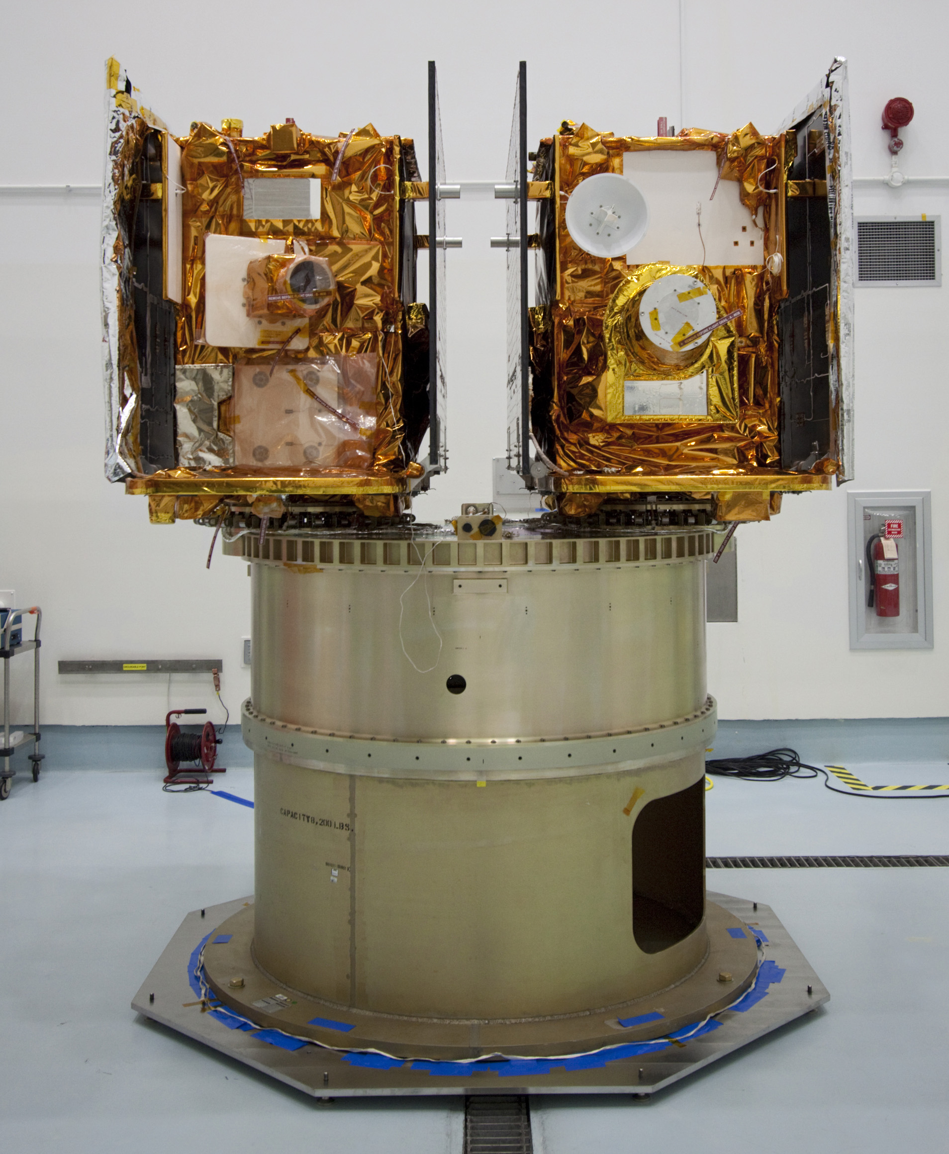 It's the first time I've ever seen anything like this -- two identical spacecraft, side by side on one launch adapter ring: