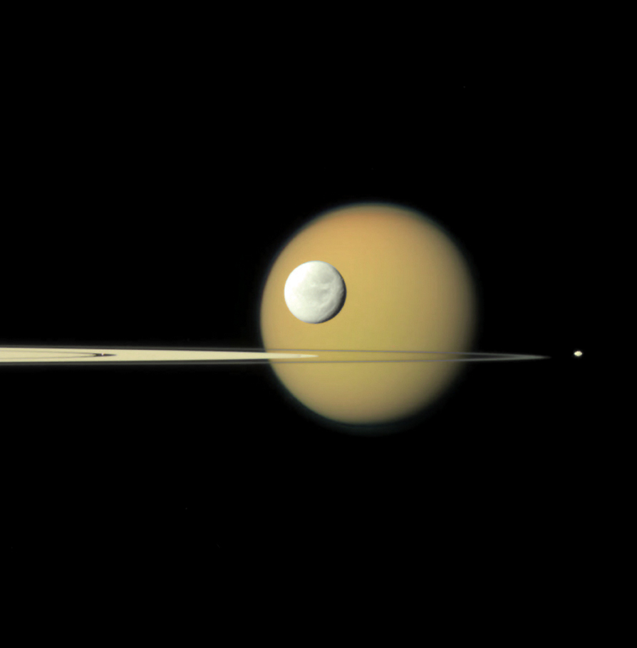 Topics: pretty pictures, Cassini, Saturn's rings, Saturn, Titan, Dione, Saturn's small moons, animation, many worlds