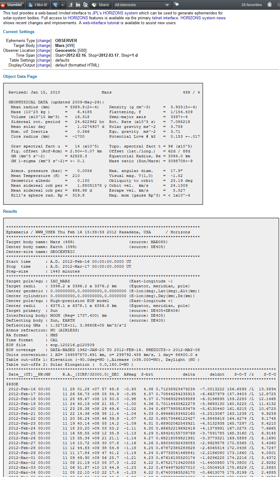 - Click Generate Ephemeris and look for "hEcl-Lon" and "hEcl-Lat," which are in degrees, and "delta," which is the range in AU.