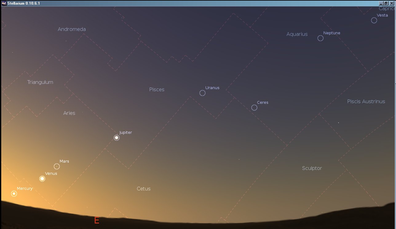 Mercury, Venus, Mars, Uranus and Neptune shortly before sunrise, June 2011