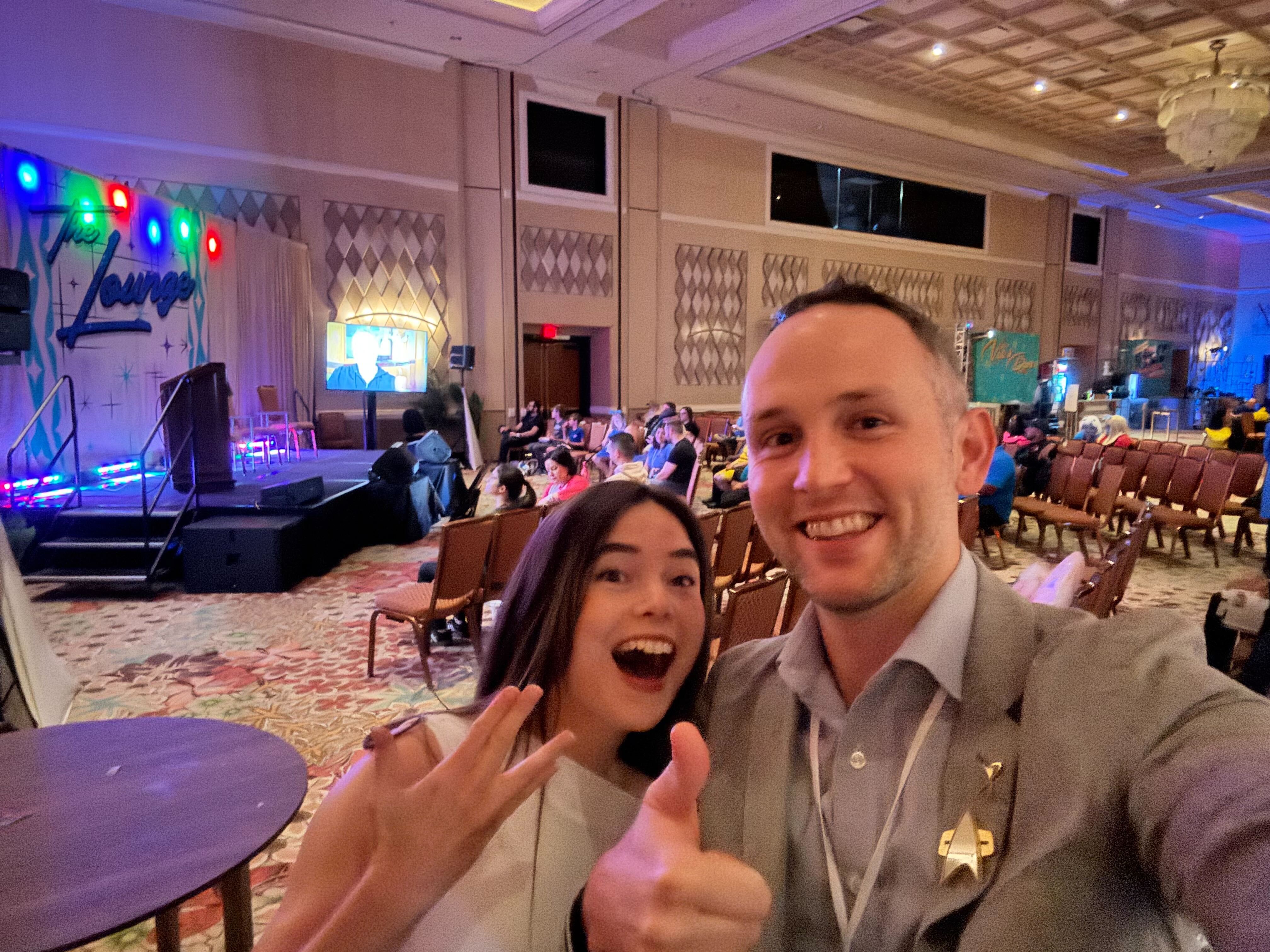 Andrew Pauly and Ambre Trujillo at STLV 2025 Andrew Pauly, director of marketing at The Planetary Society, and Ambre Trujillo, the Society’s digital community manager, pose together at Creation Entertainment’s STLV: Trek to Vegas 2025 convention in Las Vegas, Nevada. The pair participated in the panel “A Star Trek Future: Your Place in Space,” alongside “Star Trek” actors Robert Picardo and Tim Russ, to discuss how science fiction inspires real-world space exploration and advocacy. The Planetary Society