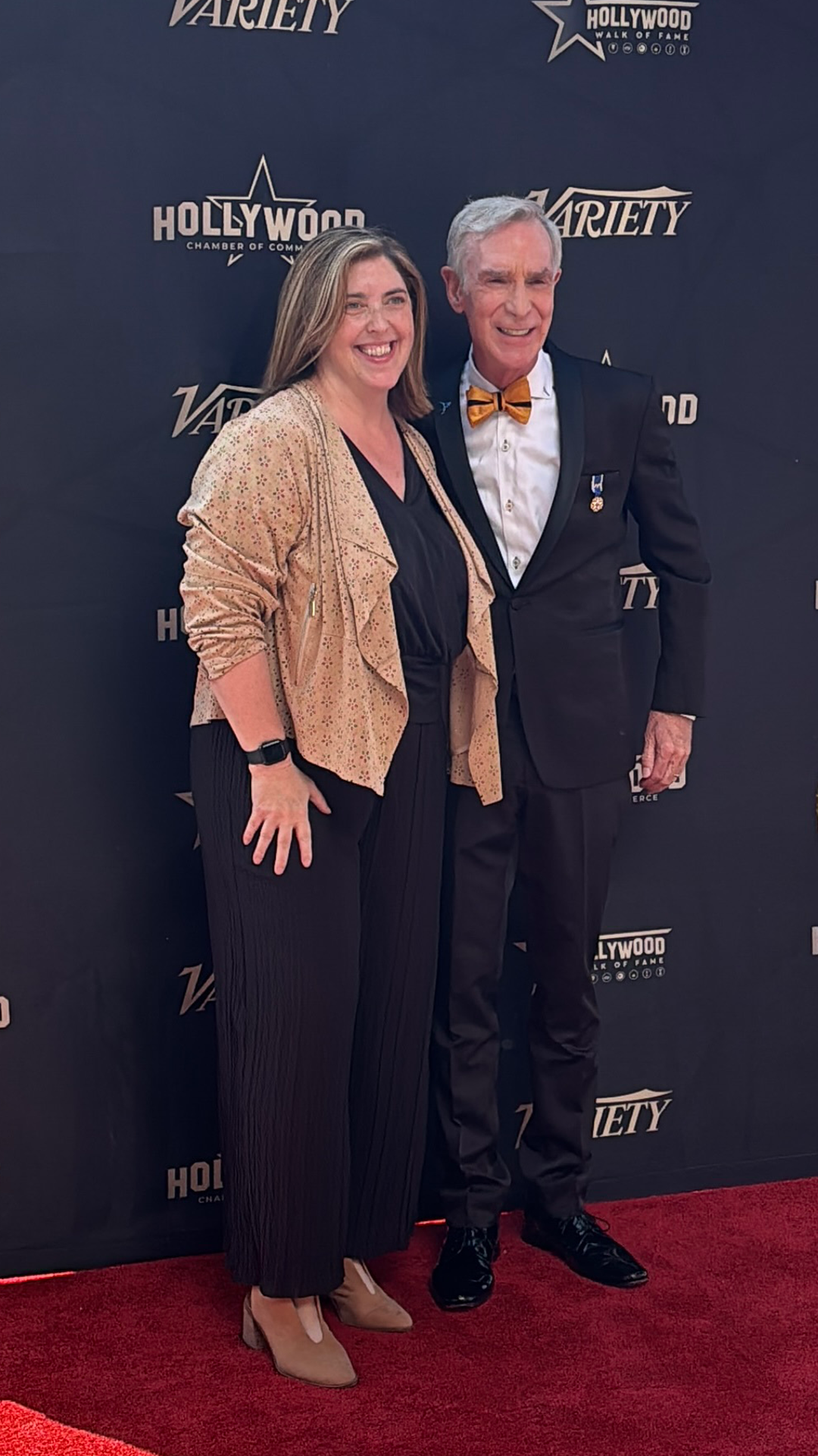 Bill Nye with Jenn Vaughn on the Hollywood Walk of Fame