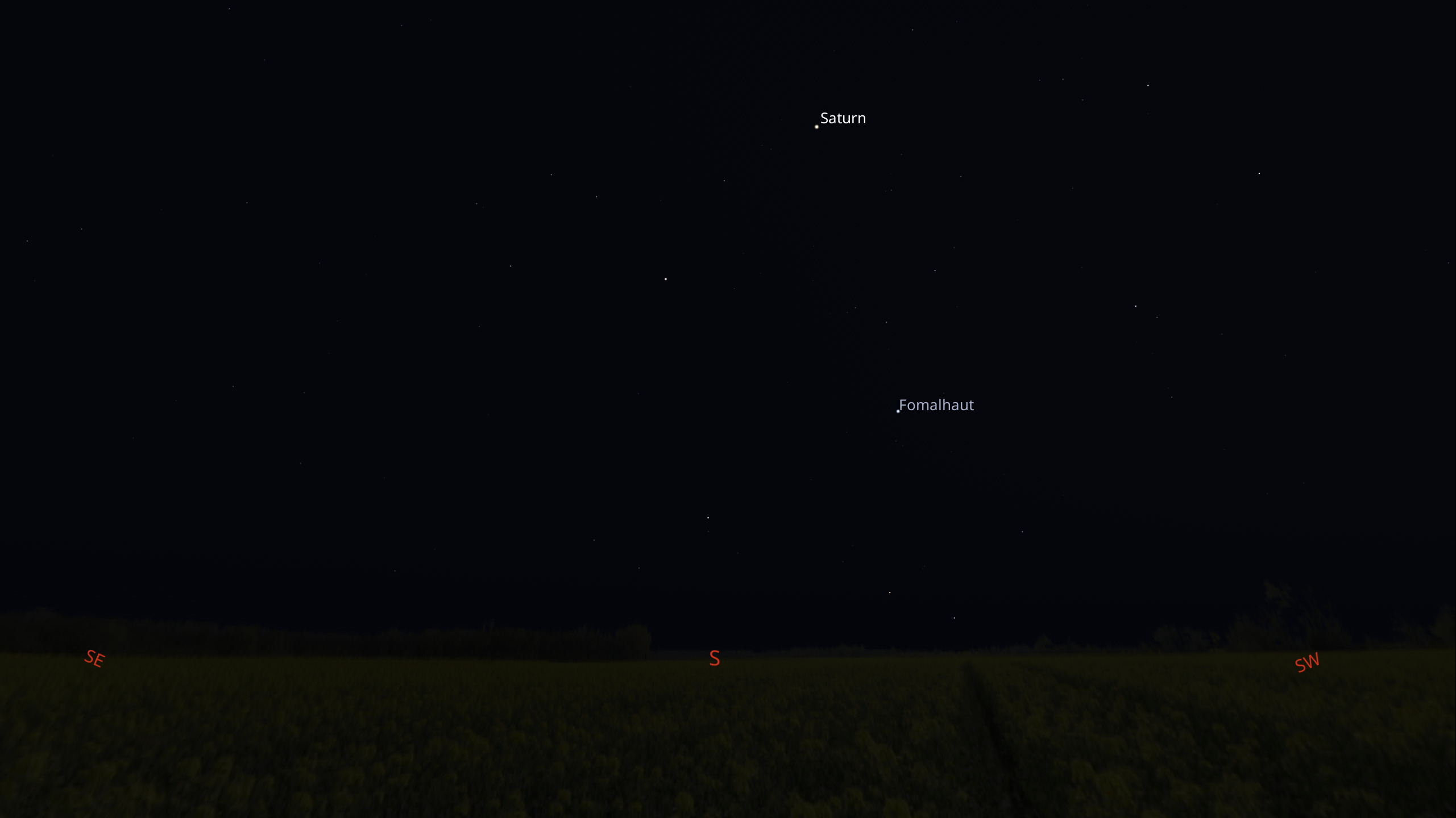 Dec. 16, 2025 night sky snapshot All month in the evening south (for those in the northern hemisphere), compare the yellowish color of Saturn to the only other bright object in that part of the sky, the star Fomalhaut. (Pasadena, California. Latitude: about 34 degrees north.) Bruce Betts/The Planetary Society using Stellarium