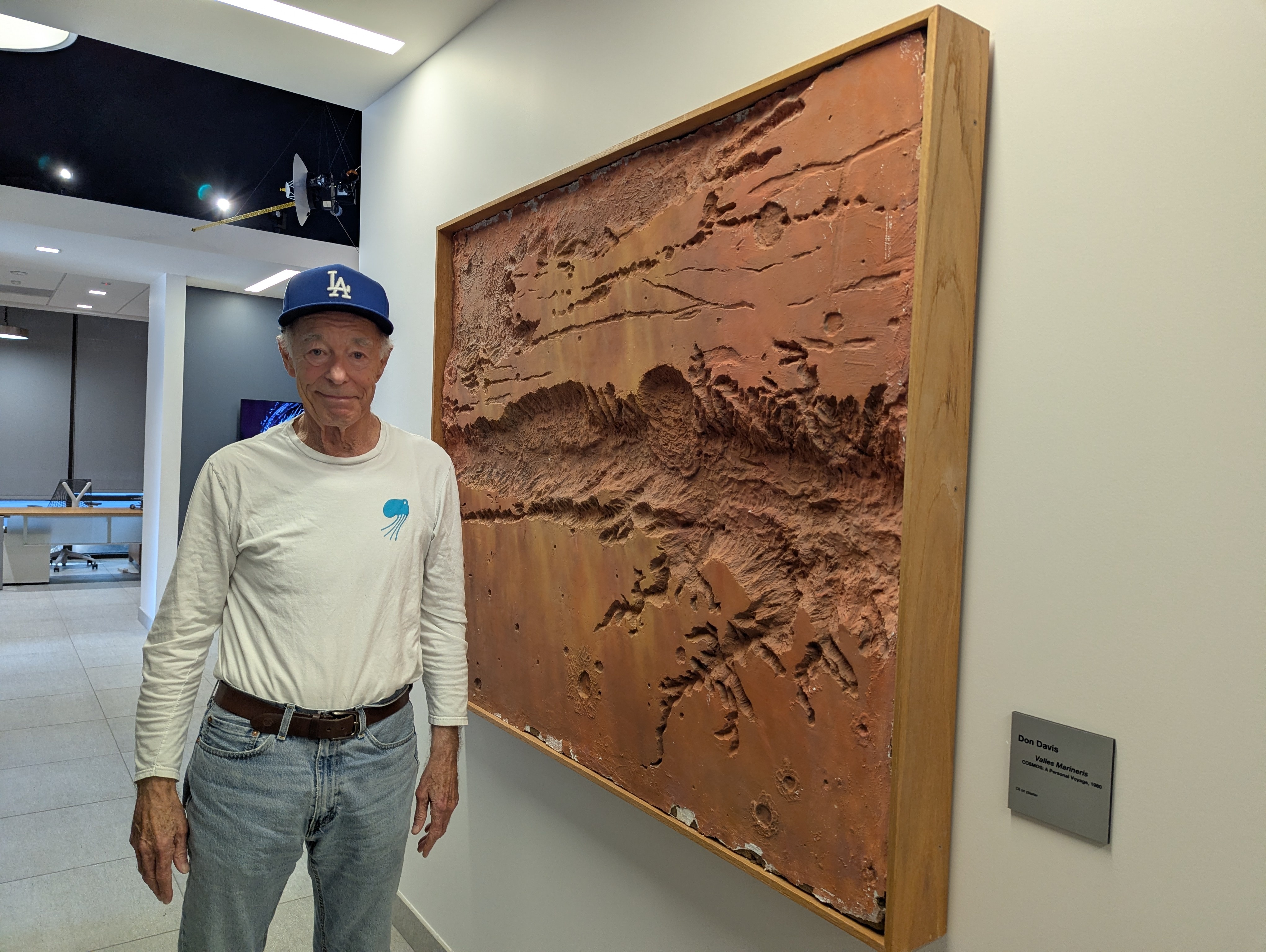 Gentry Lee with original Cosmos Valles Marineris set piece Gentry Lee poses in front of an original set piece from the 1980 television series Cosmos at The Planetary Society headquarters in Pasadena, California. The prop is a detailed carving of Valles Marineris, the vast canyon system on Mars, which was used during filming of the series. Lee served as co-developer and producer of Cosmos alongside the late Carl Sagan. Sarah Al-Ahmed / The Planetary Society