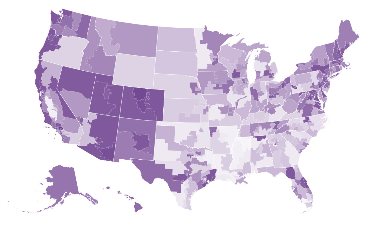 June 2025 advocacy map This map illustrates the distribution of space advocates across the United States by congressional district. The darker color represents a higher concentration of advocates. Only one district, Texas 1st Congressional District, is not represented. Data is for space advocates that participated in a Planetary Society-sponsored action between January 1 and June 25, 2025. The Planetary Society