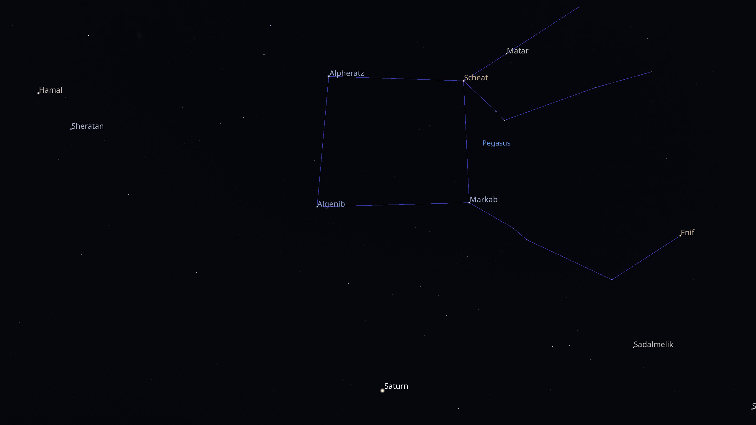 Nov. 14, 2025 night sky snapshot In the early to mid-evening, look high overhead for the constellation Pegasus (the Flying Horse), including the Great Square of Pegasus. You’ll need a very clear view to the western horizon. (Pasadena, California. Latitude: about 34 degrees north.) Bruce Betts/The Planetary Society using Stellarium