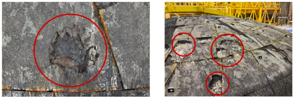 Orion heatshield damage Damage observed on Orion's heatshield after Artemis I. NASA OIG