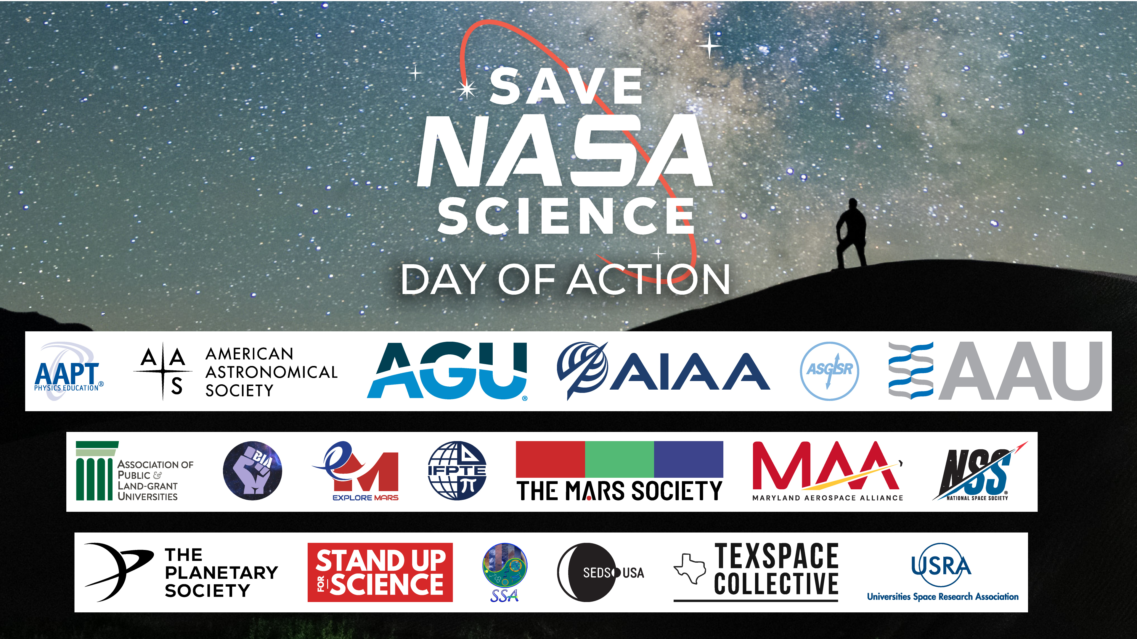 Save NASA Science Day of Action group logos